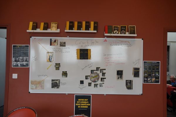 A l’occasion des 80 ans de la Série noire de Gallimard, les visiteurs de tout âge sont invités à s’asseoir pour créer les premières phrases d’un roman policier. C’est par elles que tout commence, l’histoire et l’envie de la suivre. D’authentiques « miettes » de séries noires seront à disposition, sous la forme d’un « comptoir du langage », chacun est convié à l’explorer pour composer une première phrase de roman. Les visiteurs se transforment en auteur.e.s, de roman policier et réfléchissent sur le contenu de leurs poubelles. Françoise Maury de l’atelier Ti ar Paper composera des premières phrases en direct.